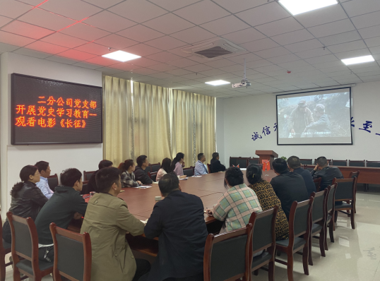 為認(rèn)真貫徹落實習(xí)近平總書記在中央黨史學(xué)習(xí)教育動員大會上的重要講話精神,進一步深入貫徹公司黨委關(guān)于開展黨史學(xué)習(xí)教育的文件精神。二分公司黨支部開展黨史學(xué)習(xí)教育活動,組織黨員和干部職工觀看電影《長征》及紀(jì)錄片《信仰的力量》節(jié)選《祖國至上》。